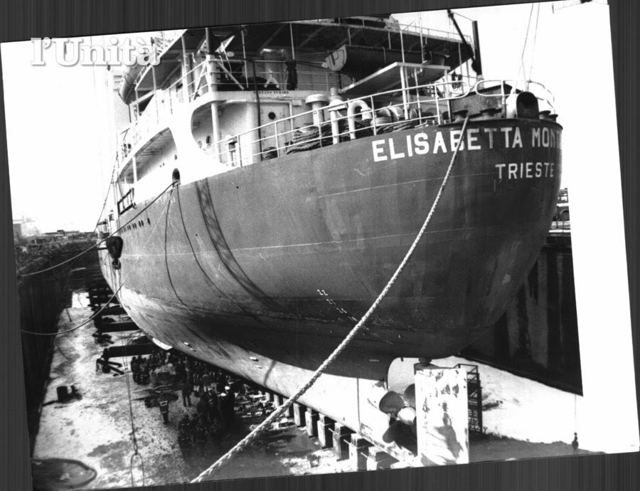 Prima di sparire dalla luce di questo pallido sole, riesco a leggere anche il nome della nave "Motonave Elisabetta Montanari".