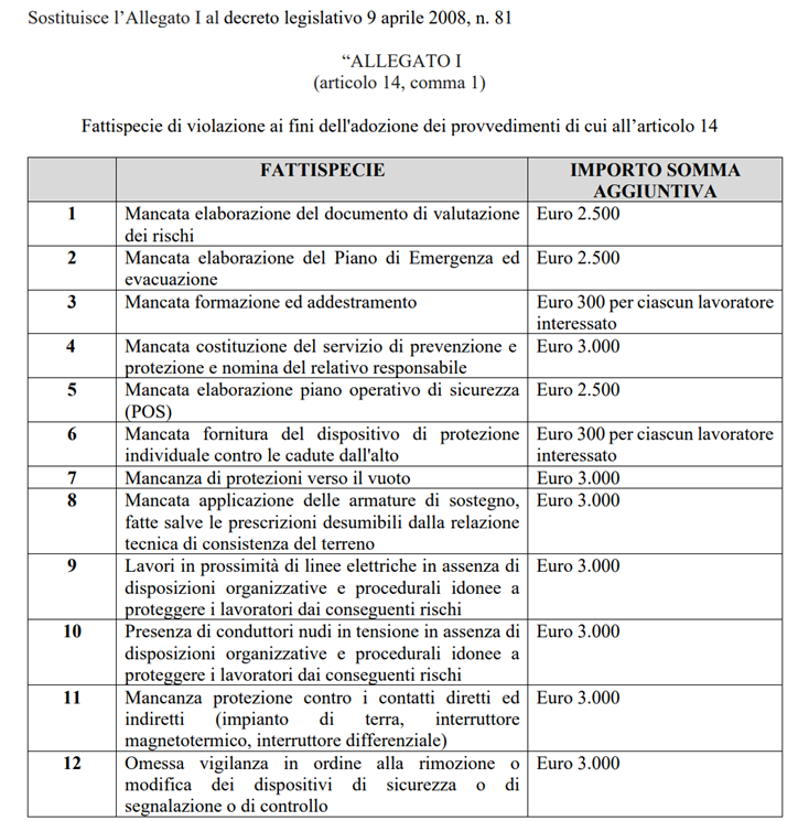 - Nel caso in cui venga accertata almeno una delle seguenti violazioni in materia di salute e sicurezza sul lavoro.